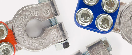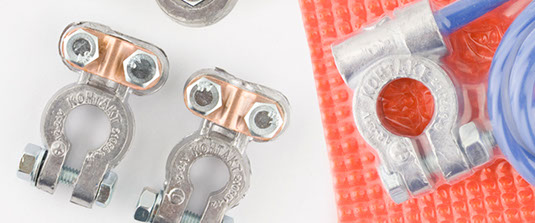 В нашем ассортименте представлены клеммы, адаптеры и перемычки для стартерных и тяговых аккумуляторных батарей.